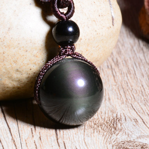 The stronger the light, the clearer the rainbow eye. In low light or indoors, obsidian is black. In the sun or strong light, you can see the beautiful rainbow eyes of obsidian.